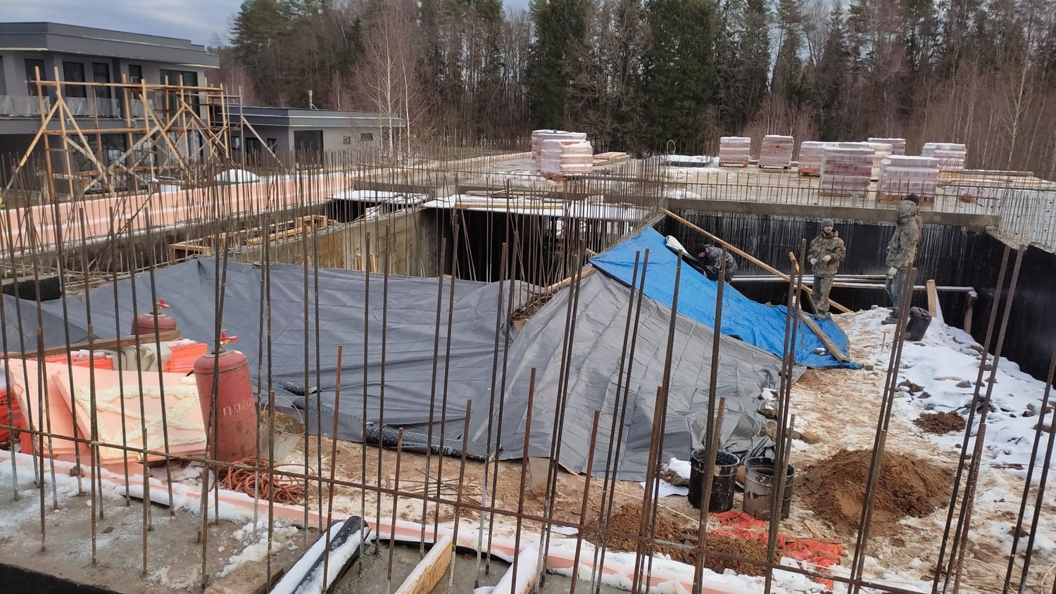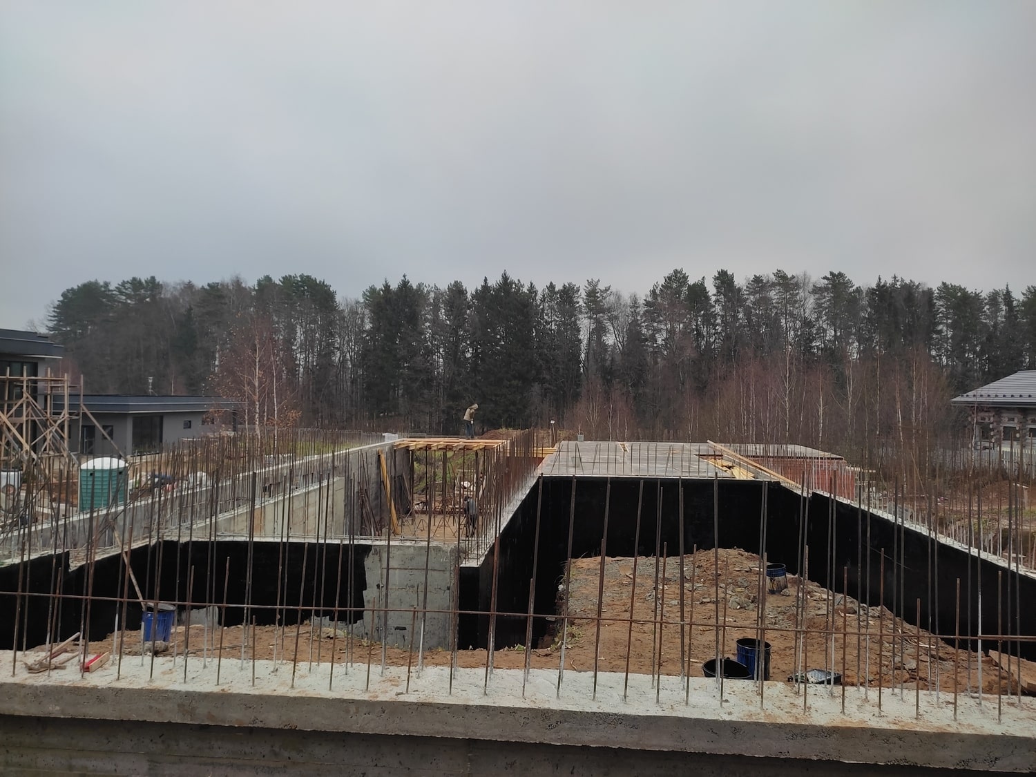 Монолитная железобетонная фундаментная плита на ребрах жесткости высотой 300 мм, включая железобетонные сваи высотой 4000 мм и диаметром 350 мм.